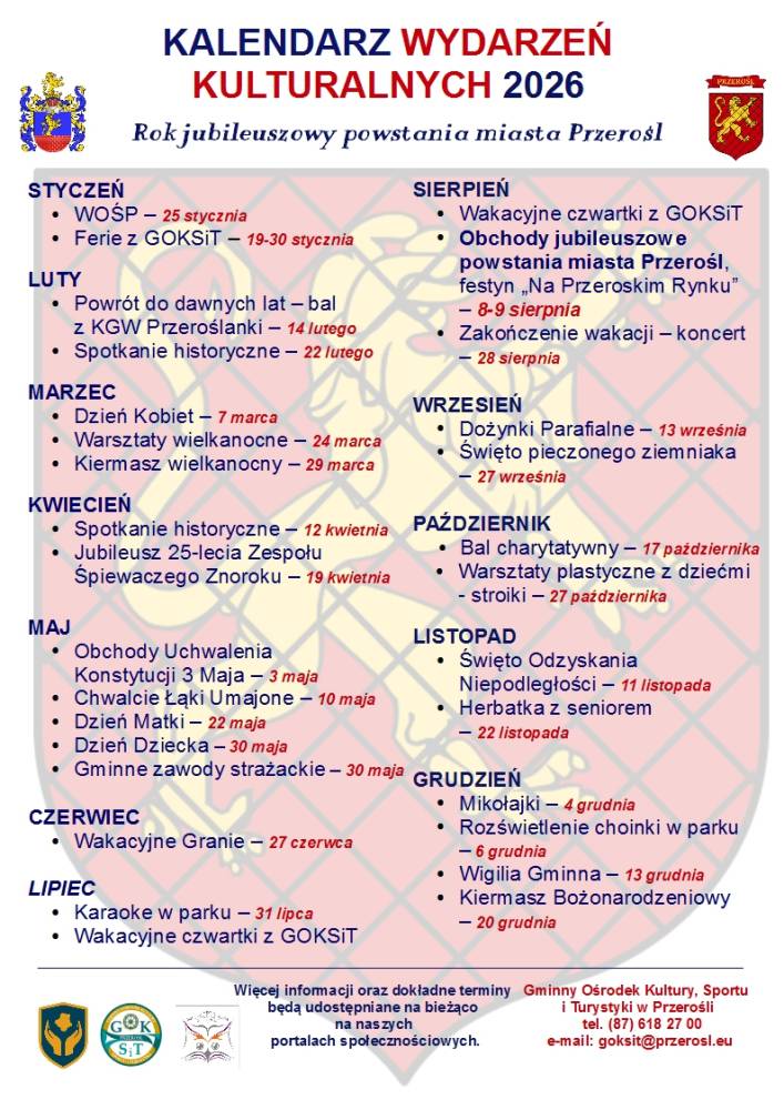 Kalendarz wydarzeń kulturalnych 2026
