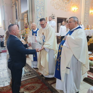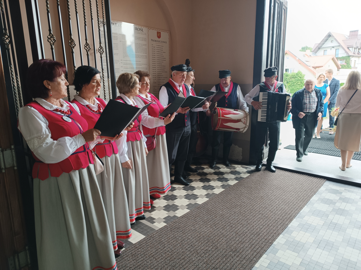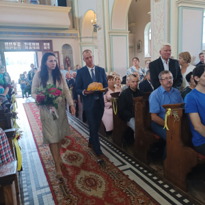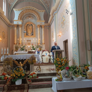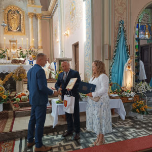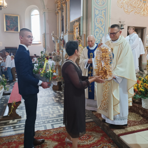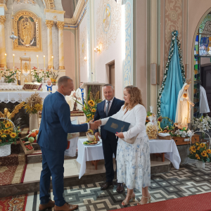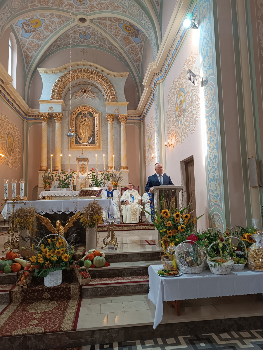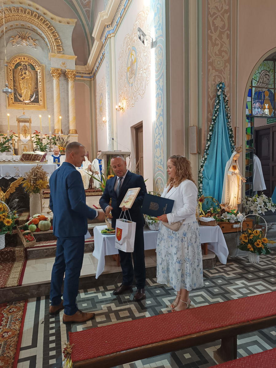 Życzenia oraz podziękowania rolnikom na ręce Starosty Dożynek przekazał wójt Gminy Przerośl Marcin Brzozowski oraz dyrektor Gminnego Ośrodka Kultury, Sportu i Turystyki w Przerośli Angelika Anna Wróblewska. Gratulacje otrzymał także Zespół Śpiewaczy Znaroku za zajęcie III miejsca w konkursie na wieniec dożynkowy - równiankę żniwną, organizowanym na Dożynkach Powiatowych w Dowspudzie.