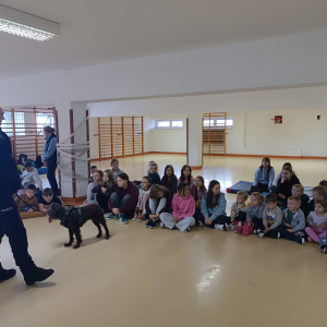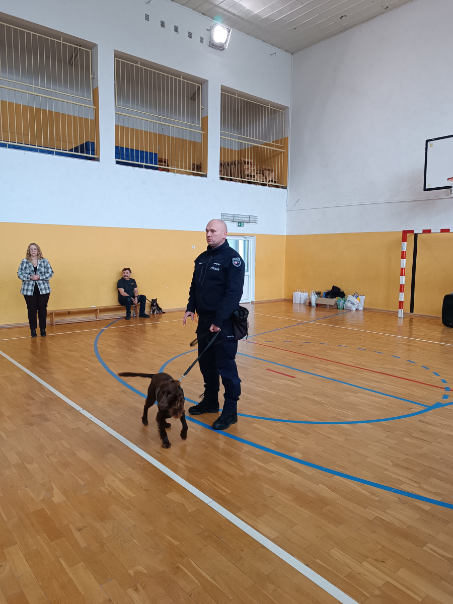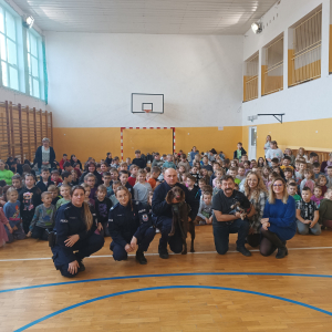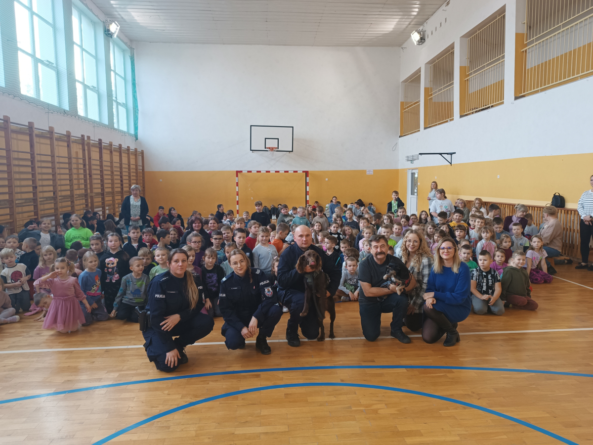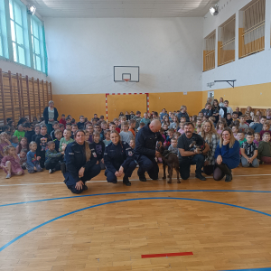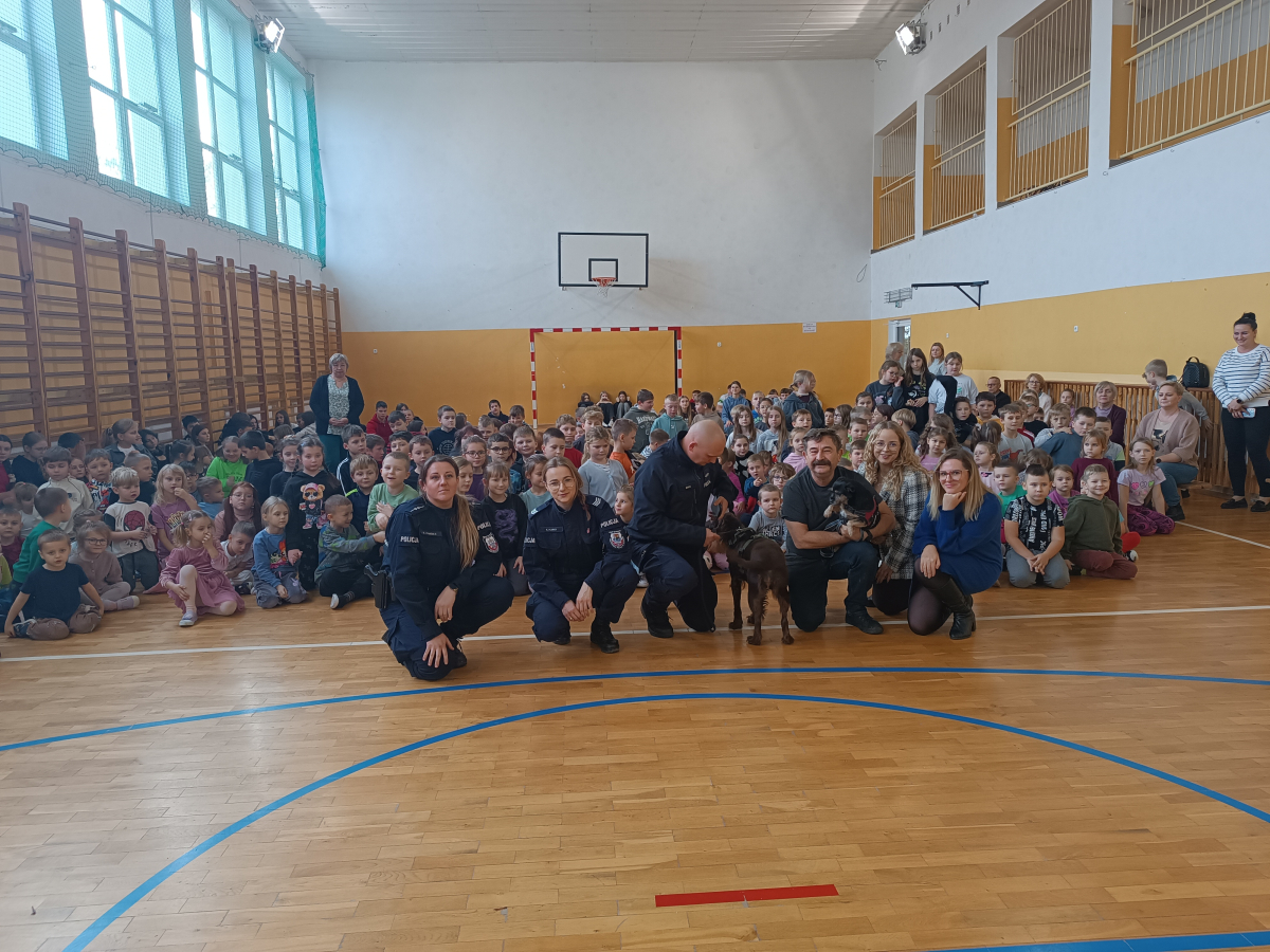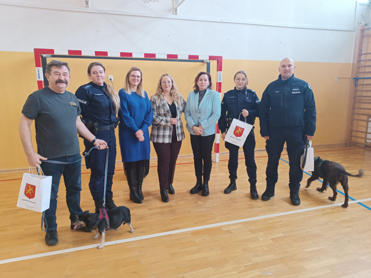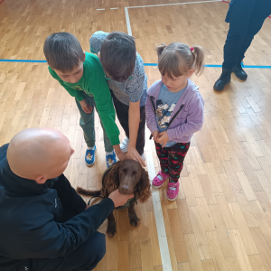 Dzisiejszego dnia Szkoła Podstawowa w Przerośli oraz Szkołę Podstawową w Pawłówce odwiedzili wyjątkowi goście – funkcjonariusze policji wraz z psem tropiącym Ajdo oraz przedstawiciel Fundacja Zwierzęta Niczyje Pan Kazimierz Walijewski również z pieskiem, Safoną. Policjanci opowiadali przede wszystkim o roli psów policyjnych. Dzieci z zainteresowaniem patrzyły jak Ajda reaguje na komendy swojego przewodnika. Pan Kazimierz opowiedział o zwierzętach, z którymi pracuje na co dzień i uświadomił nas jak bardzo jest potrzebny człowiek i jego dobre serce dla zwierząt. Podczas spotkania na ręce przedstawiciela fundacji została przekazana karma dla zwierząt, która została zebrana podczas zbiórki.