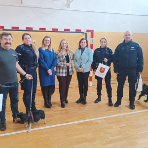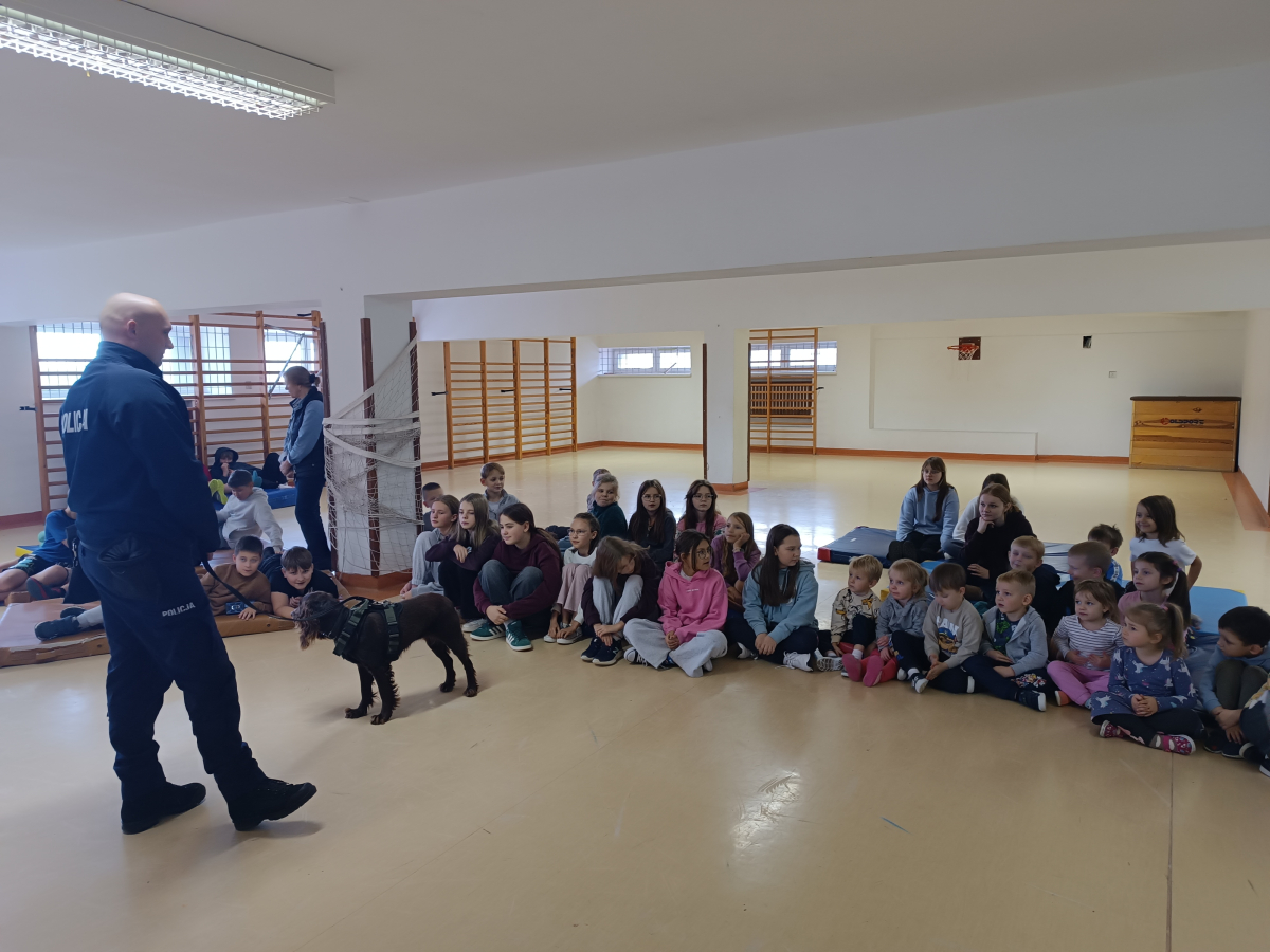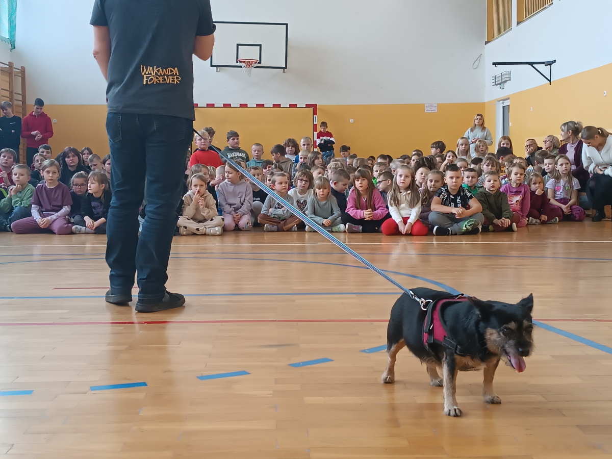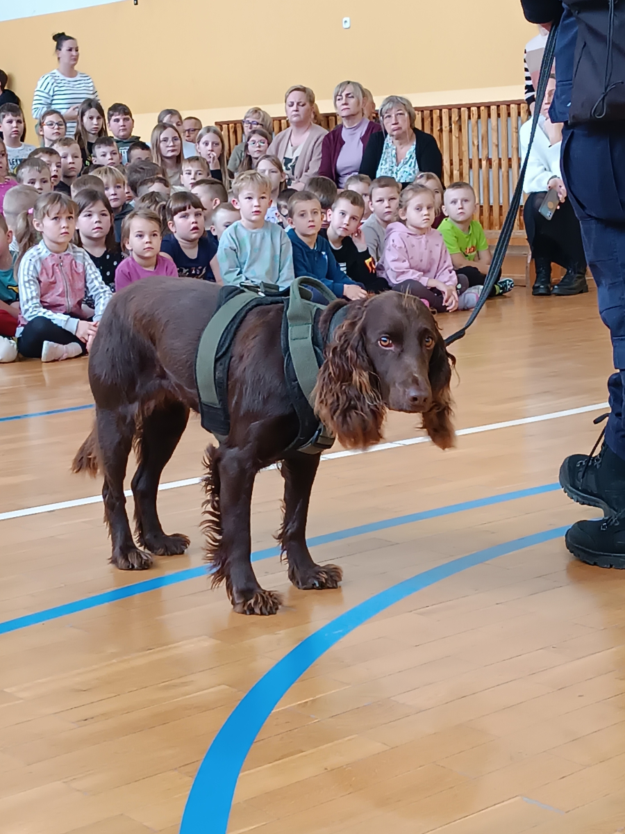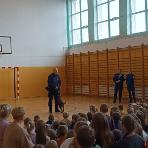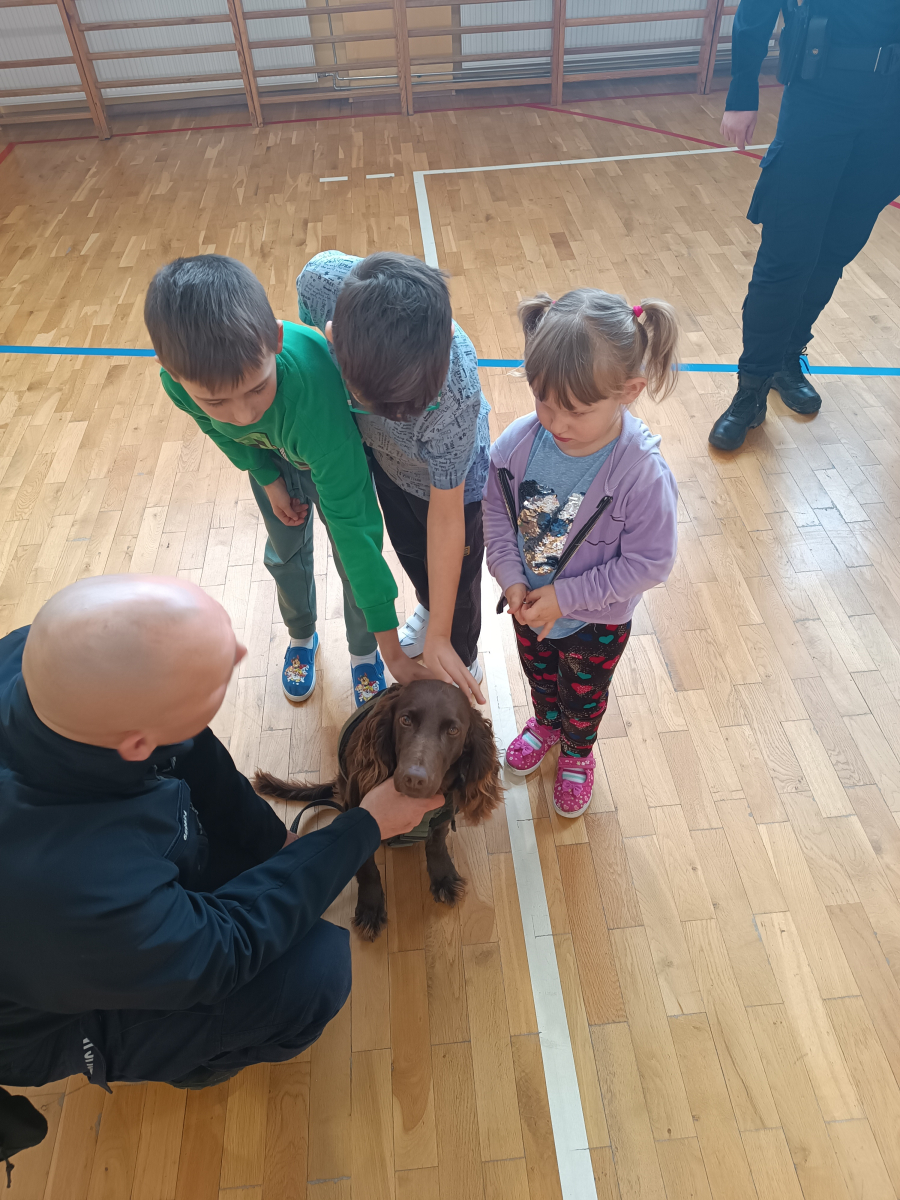 Dzisiejszego dnia Szkoła Podstawowa w Przerośli oraz Szkołę Podstawową w Pawłówce odwiedzili wyjątkowi goście – funkcjonariusze policji wraz z psem tropiącym Ajdo oraz przedstawiciel Fundacja Zwierzęta Niczyje Pan Kazimierz Walijewski również z pieskiem, Safoną. Policjanci opowiadali przede wszystkim o roli psów policyjnych. Dzieci z zainteresowaniem patrzyły jak Ajda reaguje na komendy swojego przewodnika. Pan Kazimierz opowiedział o zwierzętach, z którymi pracuje na co dzień i uświadomił nas jak bardzo jest potrzebny człowiek i jego dobre serce dla zwierząt. Podczas spotkania na ręce przedstawiciela fundacji została przekazana karma dla zwierząt, która została zebrana podczas zbiórki.