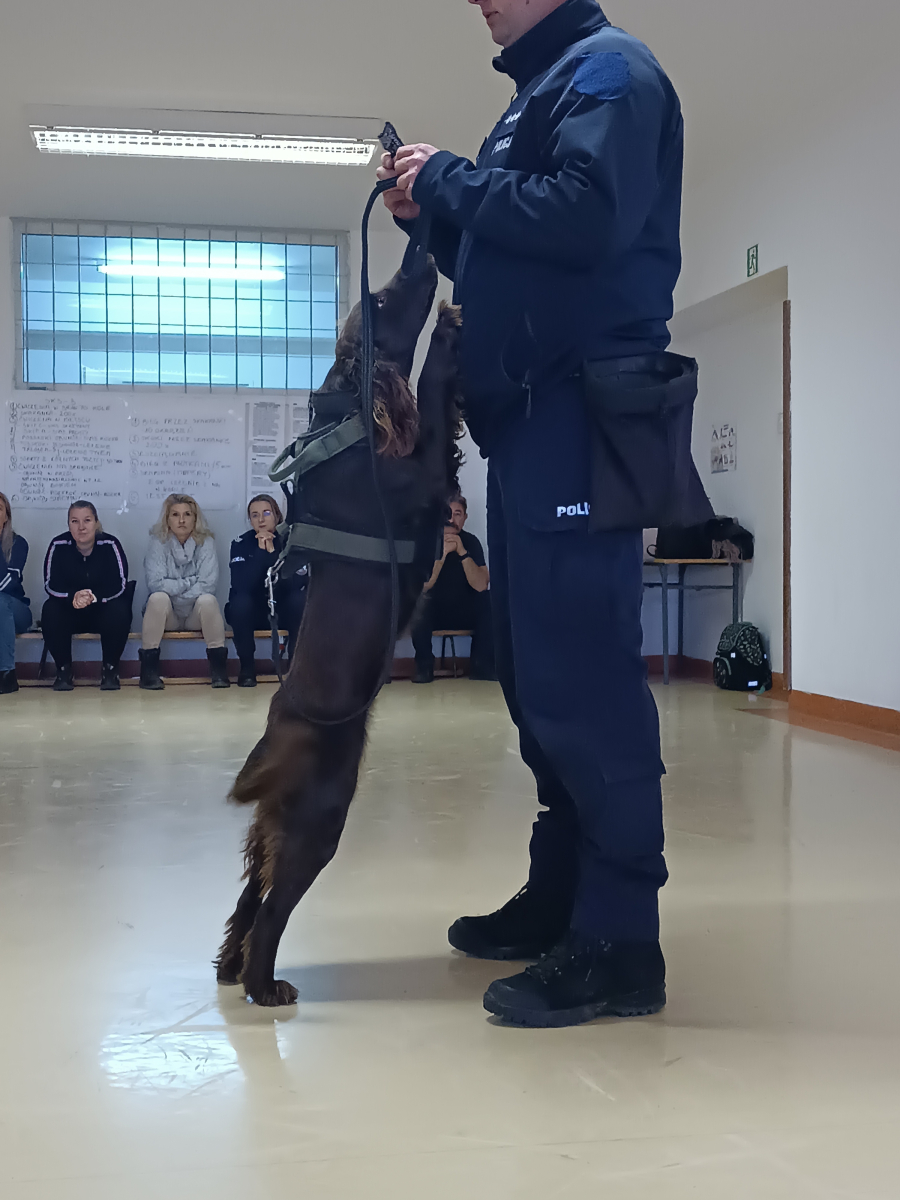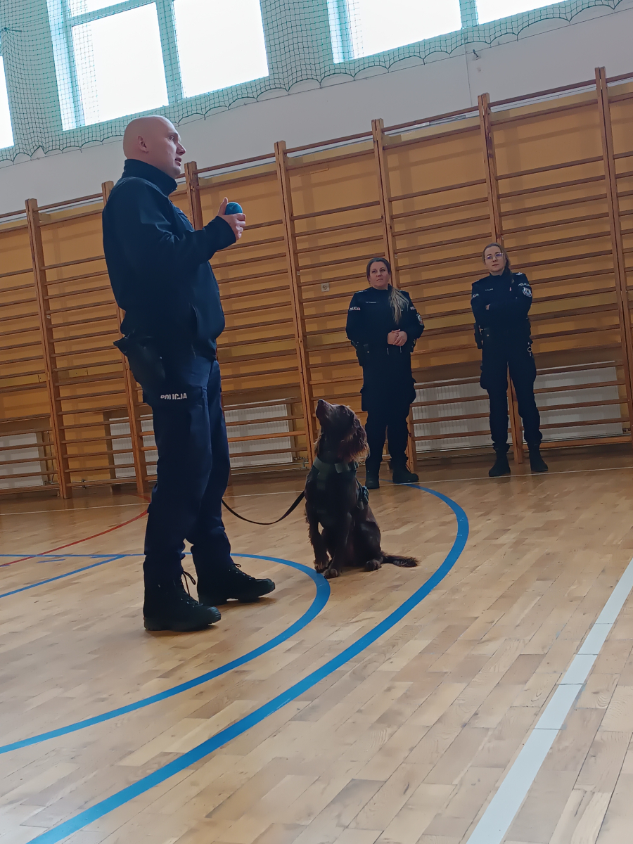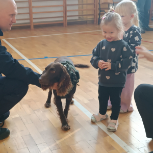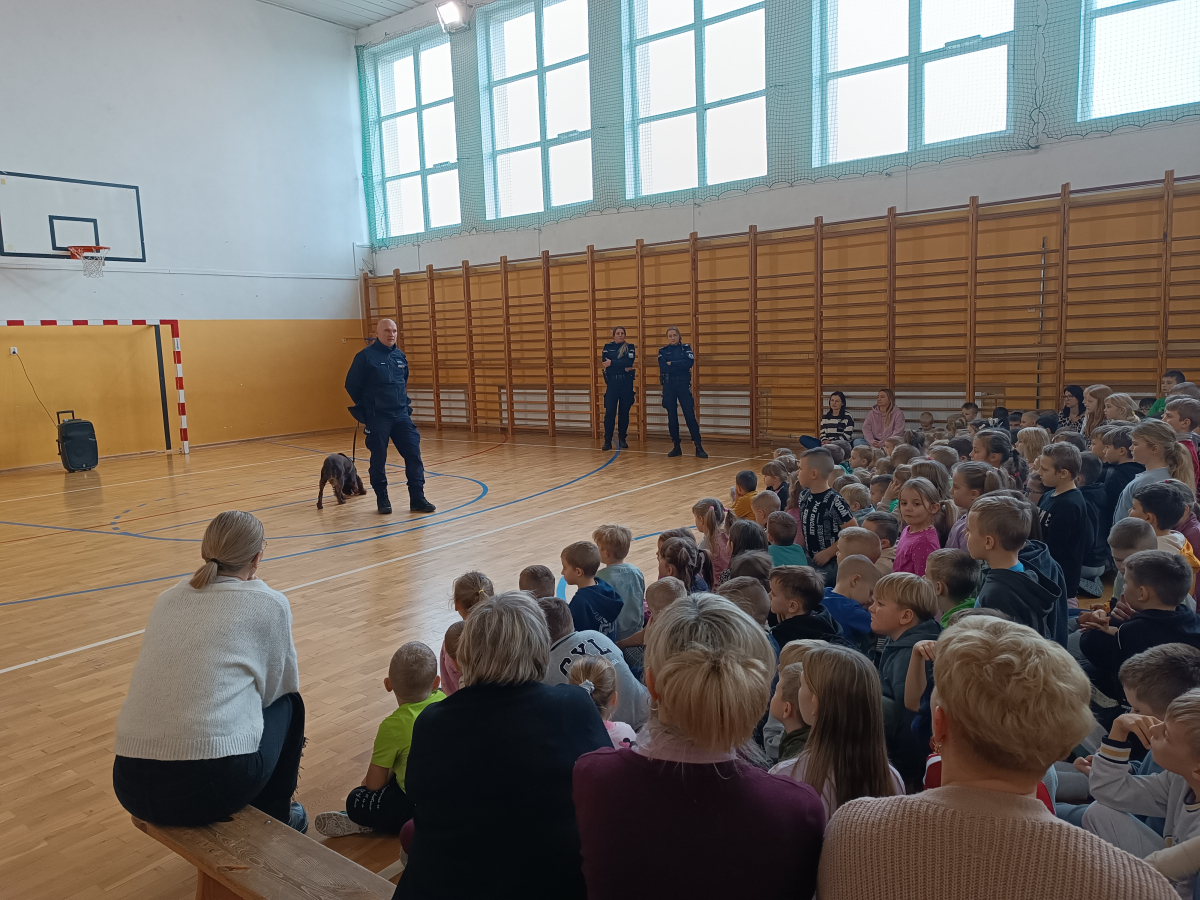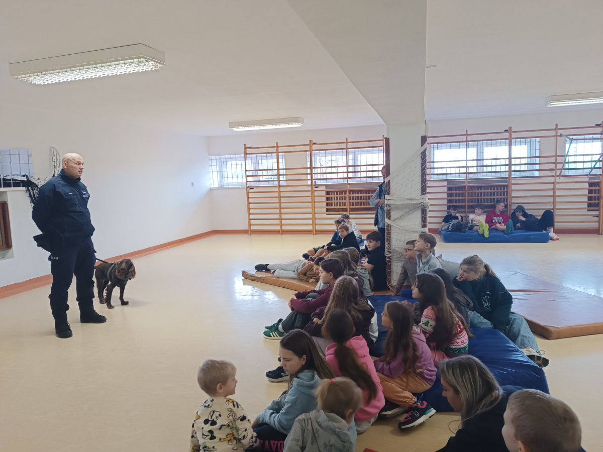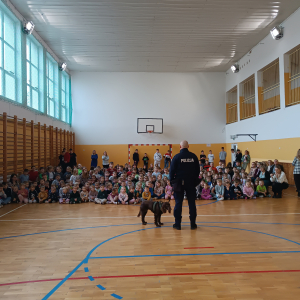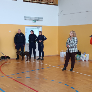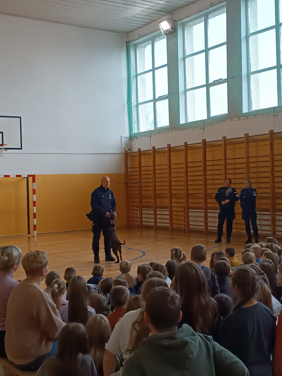Dzisiejszego dnia Szkoła Podstawowa w Przerośli oraz Szkołę Podstawową w Pawłówce odwiedzili wyjątkowi goście – funkcjonariusze policji wraz z psem tropiącym Ajdo oraz przedstawiciel Fundacja Zwierzęta Niczyje Pan Kazimierz Walijewski również z pieskiem, Safoną. Policjanci opowiadali przede wszystkim o roli psów policyjnych. Dzieci z zainteresowaniem patrzyły jak Ajda reaguje na komendy swojego przewodnika. Pan Kazimierz opowiedział o zwierzętach, z którymi pracuje na co dzień i uświadomił nas jak bardzo jest potrzebny człowiek i jego dobre serce dla zwierząt. Podczas spotkania na ręce przedstawiciela fundacji została przekazana karma dla zwierząt, która została zebrana podczas zbiórki.