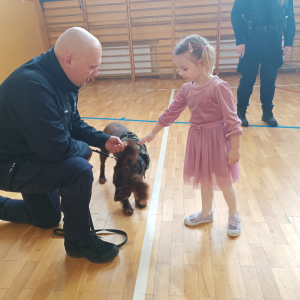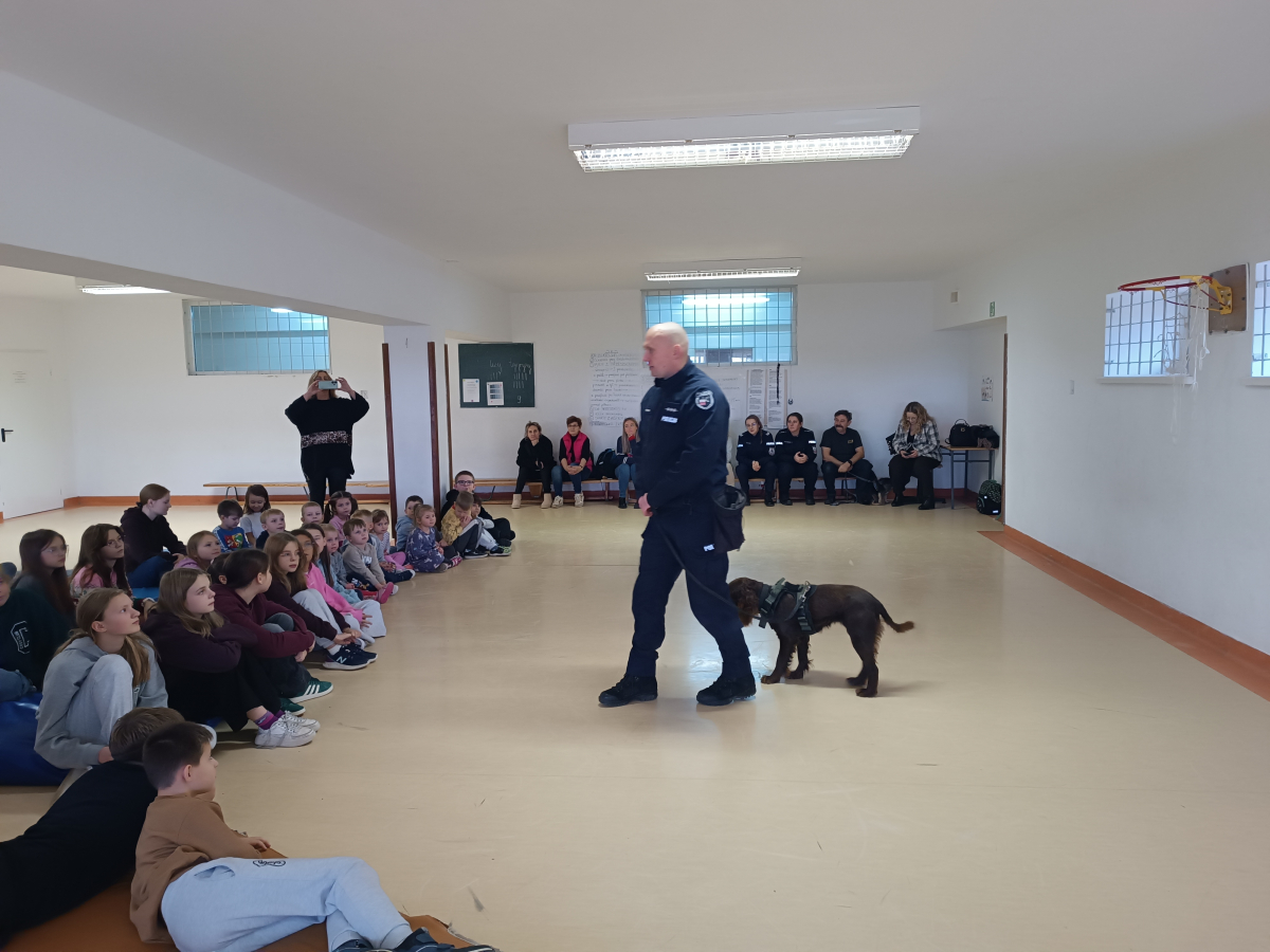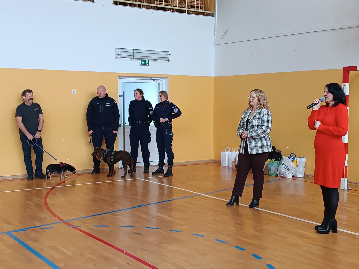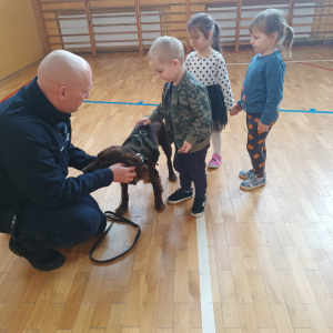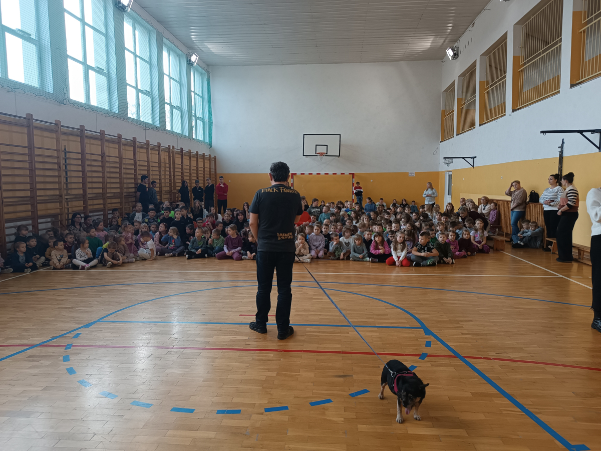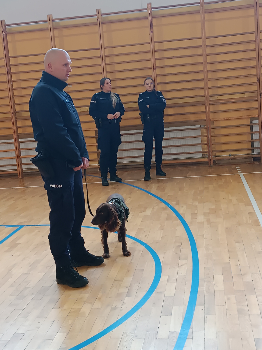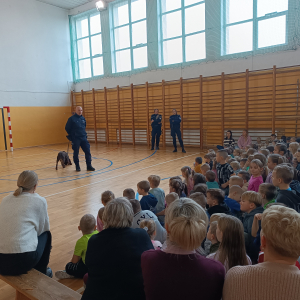 Dzisiejszego dnia Szkoła Podstawowa w Przerośli oraz Szkołę Podstawową w Pawłówce odwiedzili wyjątkowi goście – funkcjonariusze policji wraz z psem tropiącym Ajdo oraz przedstawiciel Fundacja Zwierzęta Niczyje Pan Kazimierz Walijewski również z pieskiem, Safoną. Policjanci opowiadali przede wszystkim o roli psów policyjnych. Dzieci z zainteresowaniem patrzyły jak Ajda reaguje na komendy swojego przewodnika. Pan Kazimierz opowiedział o zwierzętach, z którymi pracuje na co dzień i uświadomił nas jak bardzo jest potrzebny człowiek i jego dobre serce dla zwierząt. Podczas spotkania na ręce przedstawiciela fundacji została przekazana karma dla zwierząt, która została zebrana podczas zbiórki.