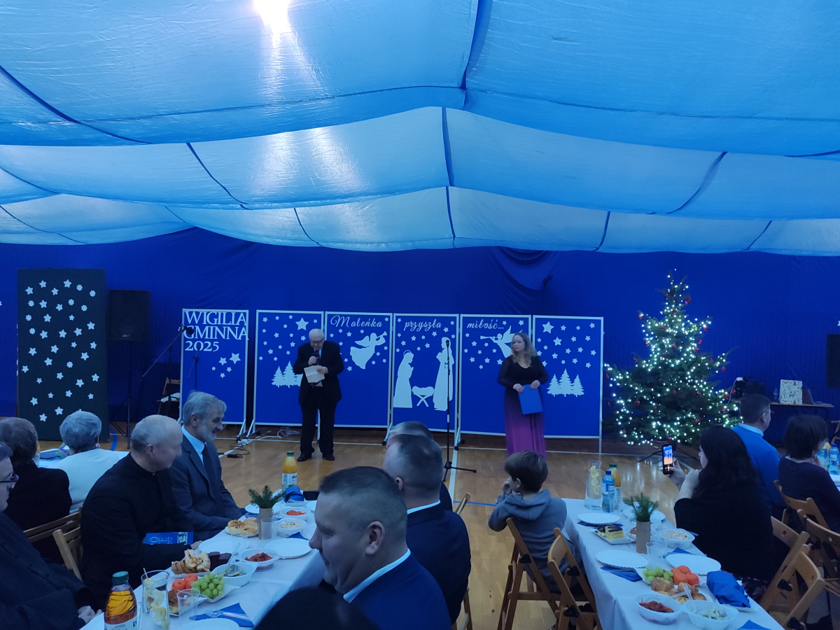 W niedzielę, 14 grudnia 2025 r. w Gminie Przerośl odbyło się spotkanie wigilijne współorganizowane z Akcją Katolicką, które zgromadziło wielu mieszkańców. Uroczystość rozpoczęła się przywitaniem gości przez Wójta Pana Marcina Brzozowskiego. Życzenia bożonarodzeniowe złożył rownież Przewodniczący Rady Gminy Pan Sylwester Milewski. Po przemówieniu Prezesa Akcji Katolickiej Pana Jana Bukowskiego i modlitwie był wspólny opłatek, następnie goście zasiedli do stołów, aby wspólnie spożywać tradycyjne potrawy wigilijne.