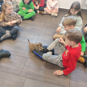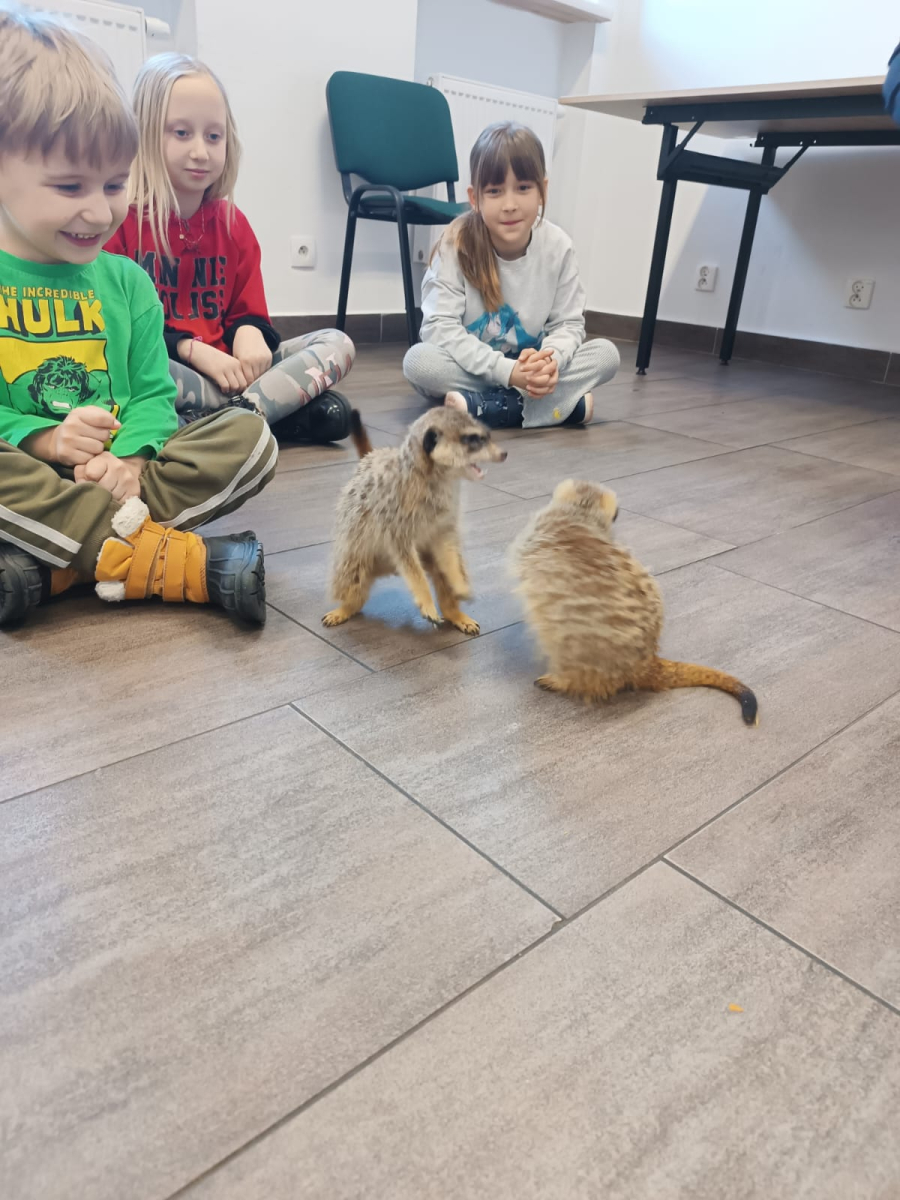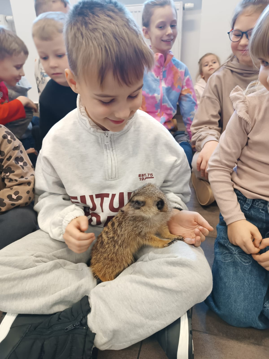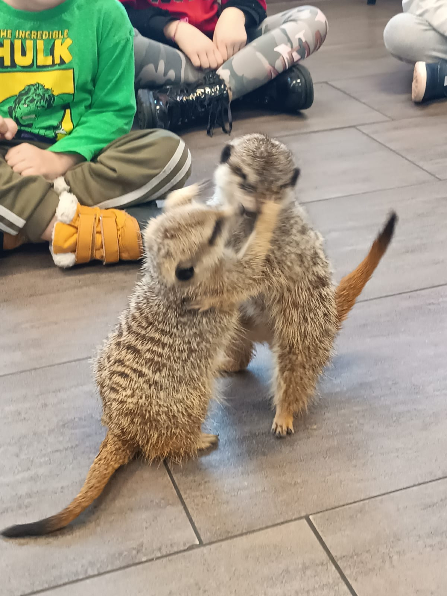 Niezwykłe spotkanie z ZOOekipa w trasie. Wczorajsze przedpołudnie spędziliśmy z ZooEkipą w trasie,a naszymi goścmi były dwie urocze surtkatki - Bajka i Frodo. Uczestnicy mieli okazję poznać bliżej te fascynujące zwierzęta, dowiedzieć się ciekawostek o ich życiu, zwyczajach oraz codziennej opiece.Bajka i Frodo skradły serca wszystkich swoja energią, ciekawością świata i niesamowitym urokiem. Dziękujemy ZooEkipie za wizytę i niezapomniane emocje. To było spotkanie pełne radości, uśmiechów i bliskości z naturą!