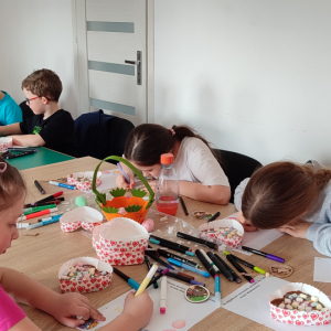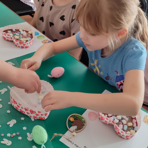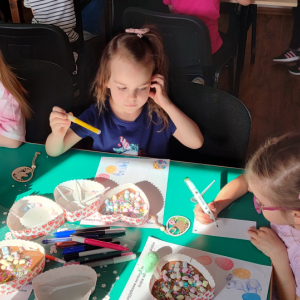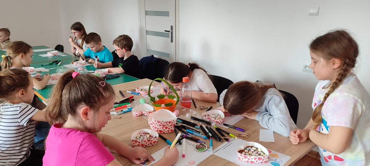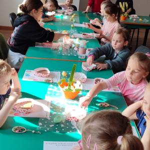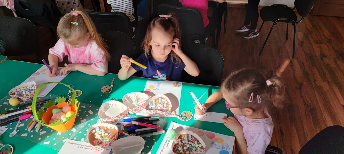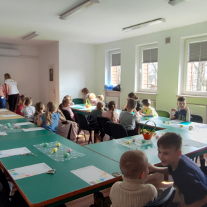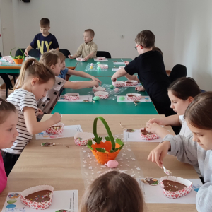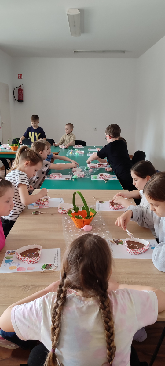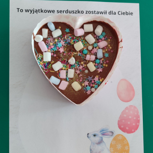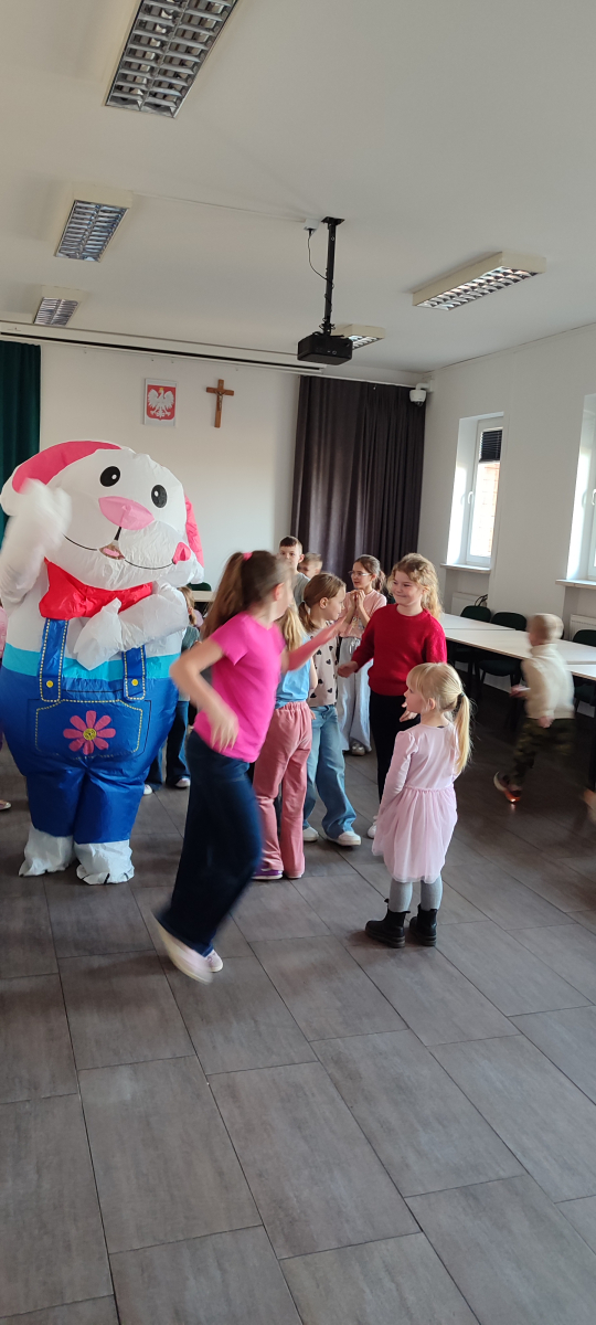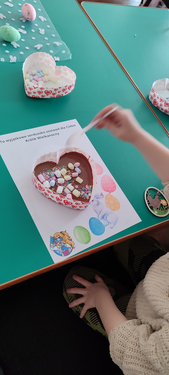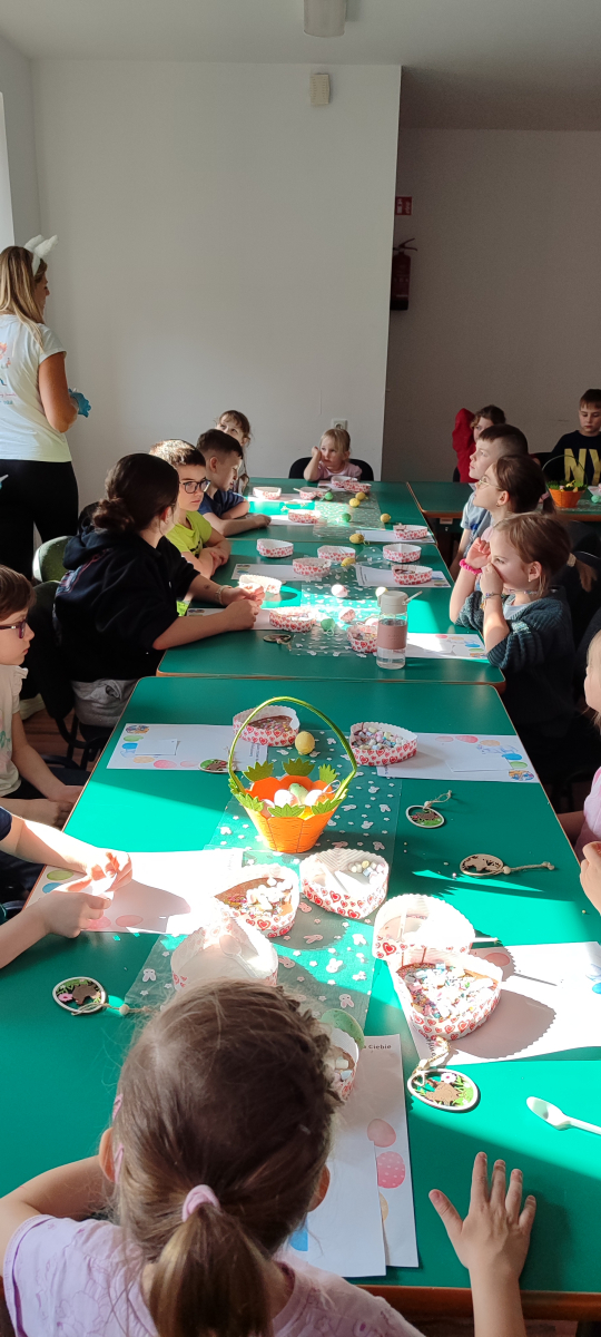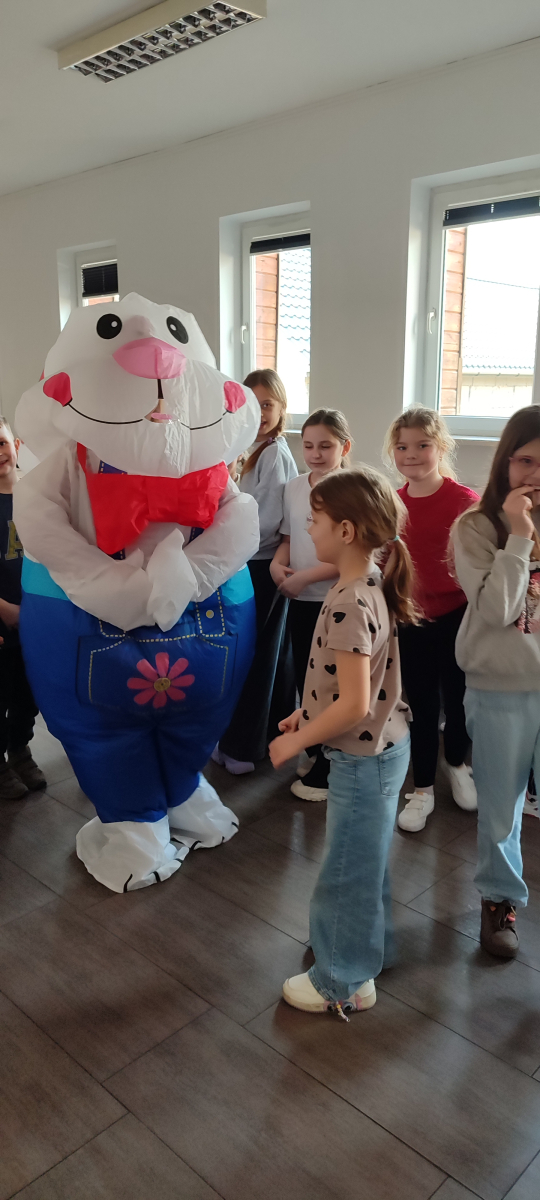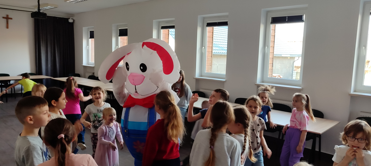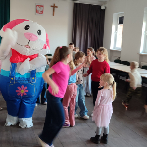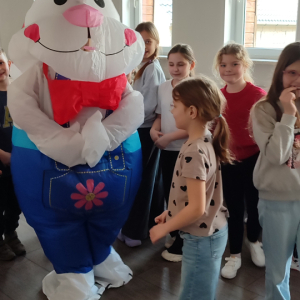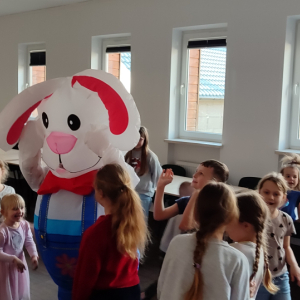 To jednak nie był koniec atrakcji! Odwiedził nas także Zajączek Wielkanocny, który przyniósł uśmiech i wprowadził wszystkich w świąteczny nastrój.