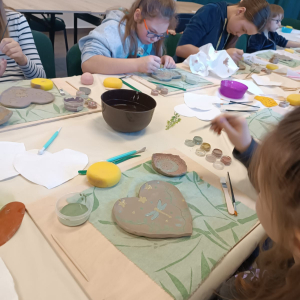 Zakończyliśmy je kreatywnie – dzieci własnoręcznie wykonały gliniane talerzyki.