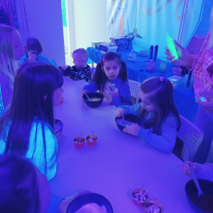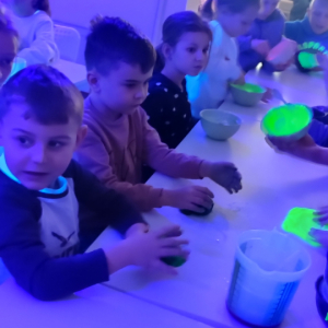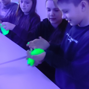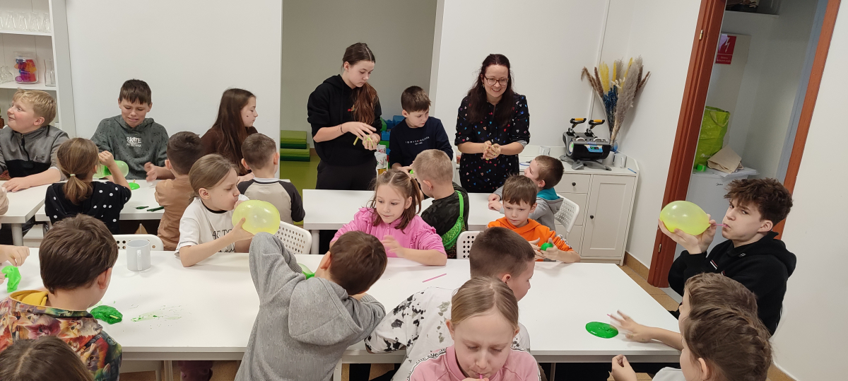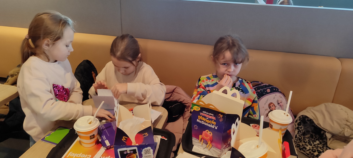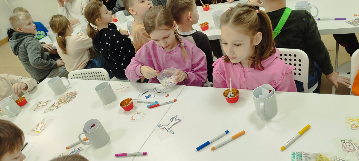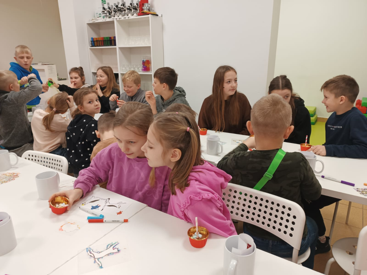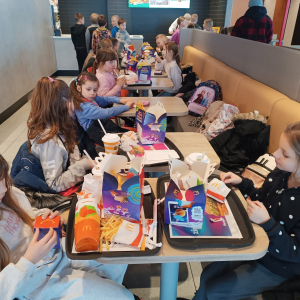 W ramach ferii zimowych odwiedzilismy Laboratorium Zabawy w Suwałkach. Dzieci uczestniczyły w zajęciach kreatywnych, podczas których tworzyły własne slime’y oraz rysunki przeniesione następnie na kubki. Każdy uczestnik otrzymał pudełeczko, w którym mógł bezpiecznie zapakować wykonany kubek i zabrać go do domu. Zajęcia dostarczyły dzieciom wiele radości i satysfakcji. Na zakończenie wyjazdu uczestnicy odwiedzili restaurację McDonald’s.